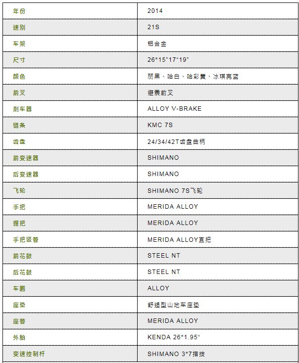 美利达勇士360车架为轻量化铝合金设计,整车搭配SHIMANO 21段变速系统,铝合金V刹,避震前叉,同时具有辅把设计。两个经典的颜色:黑、白及两个靓丽的黄和蓝色。