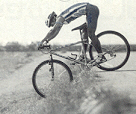■速降/上、下较剧烈的地方 比基本位置再降低5~10cm,使得坐在鞍座上时脚底的1/3能够接触地面,其作用是易着地。trial时鞍座越低体重移动越方便,山地车的操作性也越好。右相片:(上)踩蹬为主时的姿势。(下 )操作性为主时的姿势。左相片:下坡时鞍座的高度,应该使臀部很顺利地往後退。